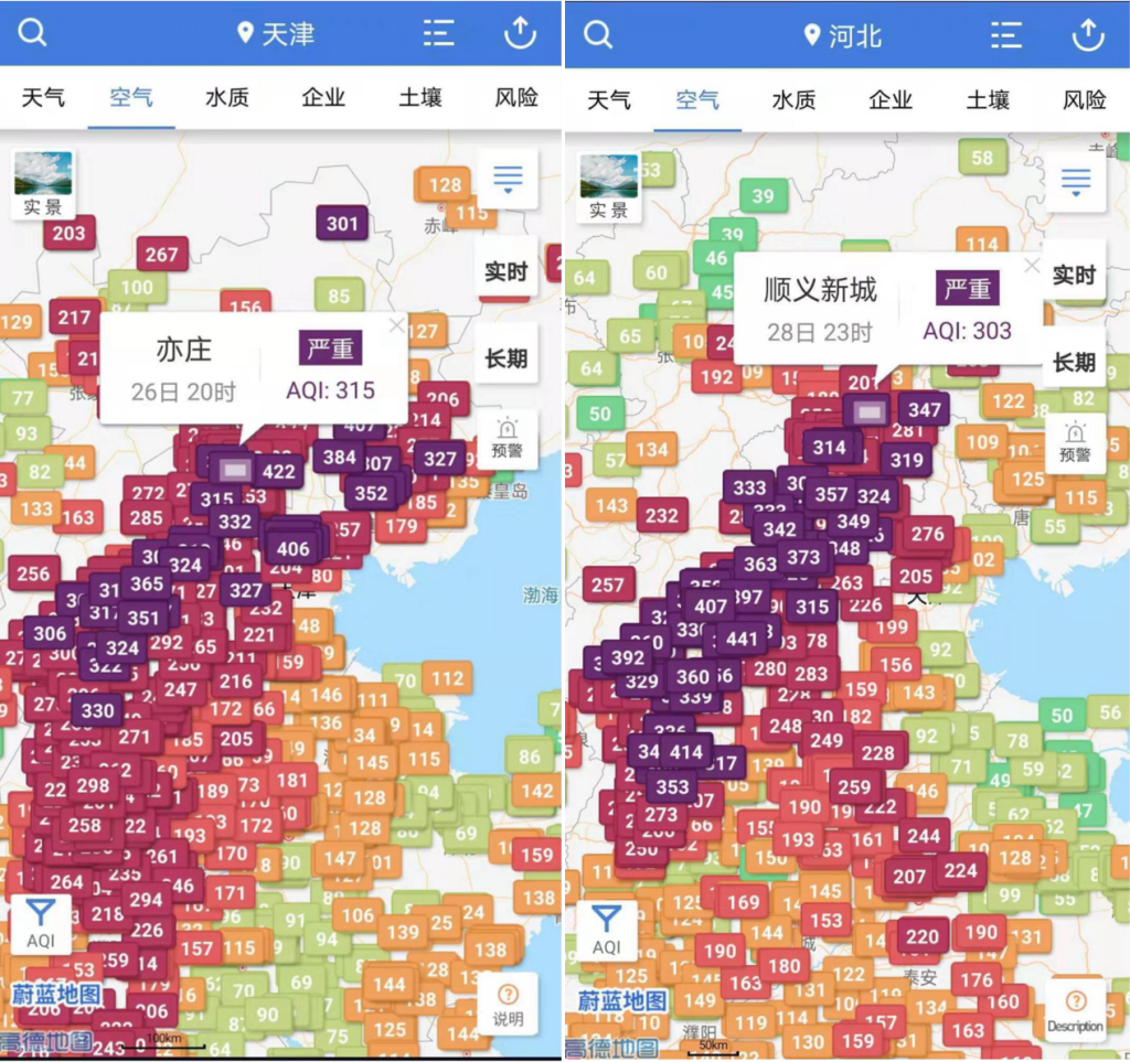 Figure 2 Air quality index of North China on January 26 and 28, 2020
