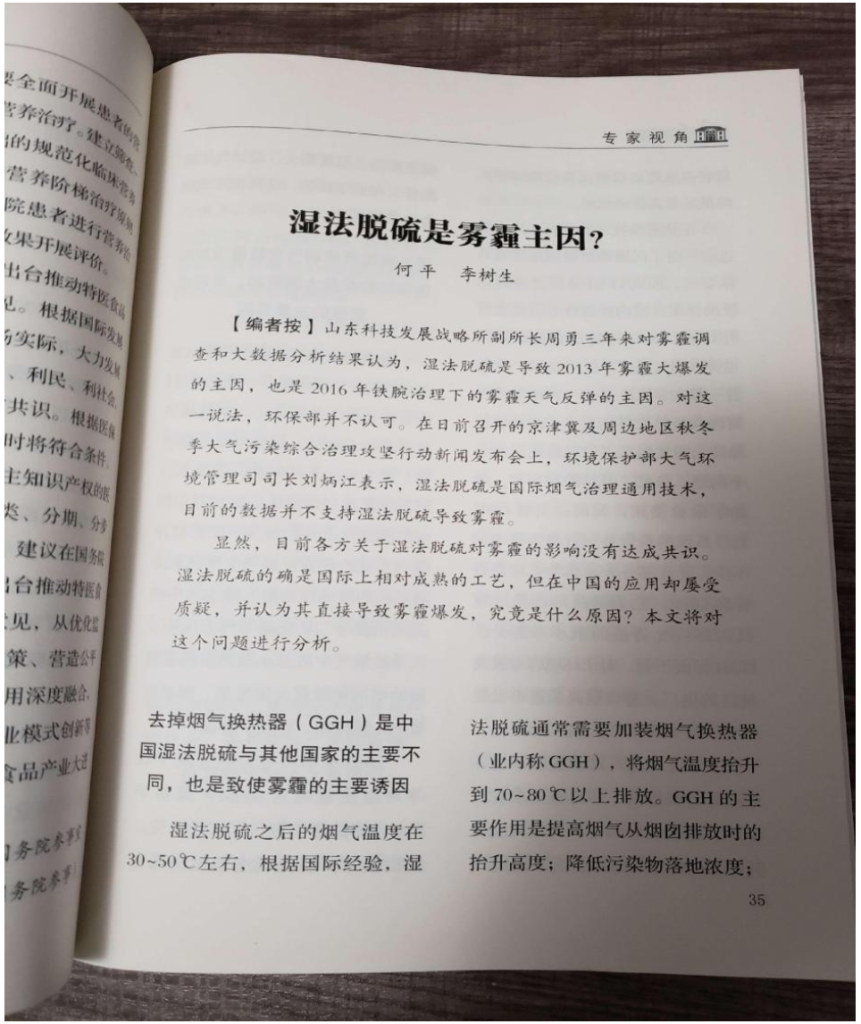 Figure 6 Dr. Ping He and Li Shusheng published an article ” Is wet desulfurization the